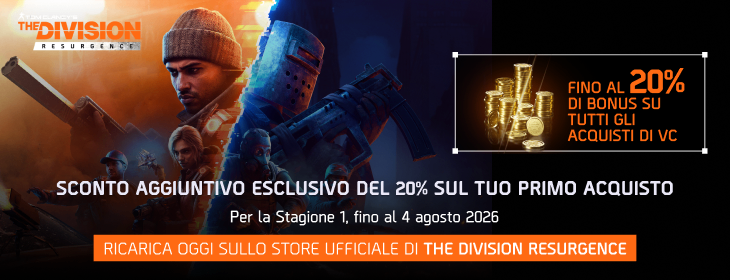 IL THE DIVISION RESURGENCE WEB STORE È GESTITO DA CODA. CODA È UN RIVENDITORE AUTORIZZATO DI CONTENUTI DIGITALI PER THE DIVISION RESURGENCE DI UBISOFT.