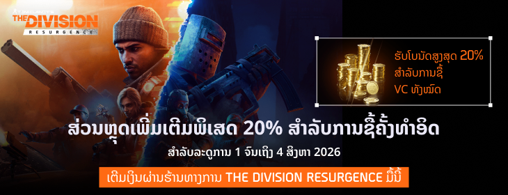 - ເຄຣດິດພຣີມຽມ ຈະຖືກເພີ່ມເຂົ້າໃນບັນຊີ The Division Resurgence ຂອງທ່ານທັນທີ. ເລີ່ມການຊື້ຂອງທ່ານຕອນນີ້!
